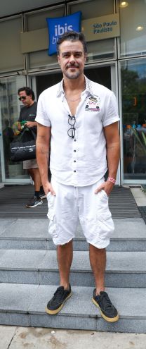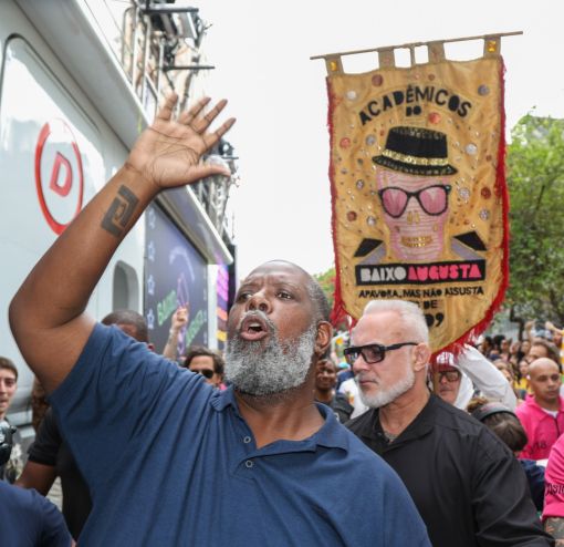 5 de 14O ator e apresentador Joaquim Lopes acompanha a passagem do bloco Acadêmicos do Baixo Augusta pela Rua da Consolação, em São Paulo, neste domingo (8) • Tomzé Fonseca/Agnews
