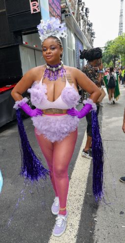 10 de 14A influenciadora e ex-BBB Thelma Assis, a Telminha, prestigia o desfile do bloco Acadêmicos do Baixo Augusta na Rua da Consolação, em São Paulo, neste domingo (8) • Tomzé Fonseca/Agnews
